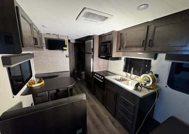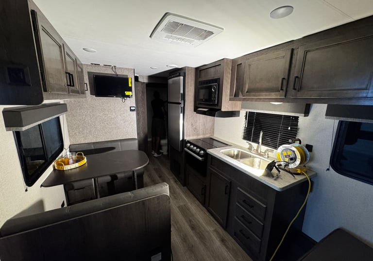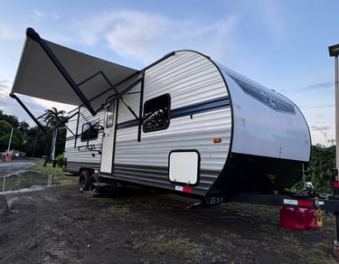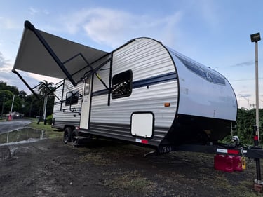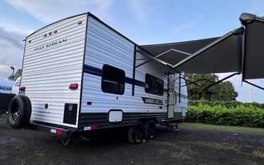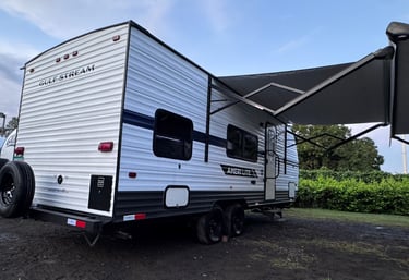 Our campers feature exterior amenities designed to enhance your on-location comfort and convenience, including extendable awnings for shade and relaxation.